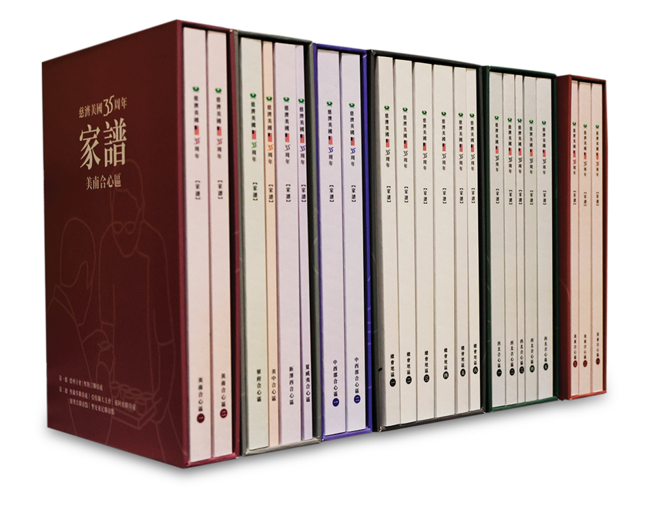 慈濟美國《家譜》匯集超過四百位資深慈濟志工的口述歷史訪談,以貼近人物的真實個性為依歸,透過每個主人翁的生命歷程故事,忠實還原呈現慈濟在美國發展的歷程。全系列共22本,是集合超過五百人力量、集體創作而成的集體記憶,更是一部紀錄美國亞裔社區發展,橫跨四十年回憶的台灣移民史。