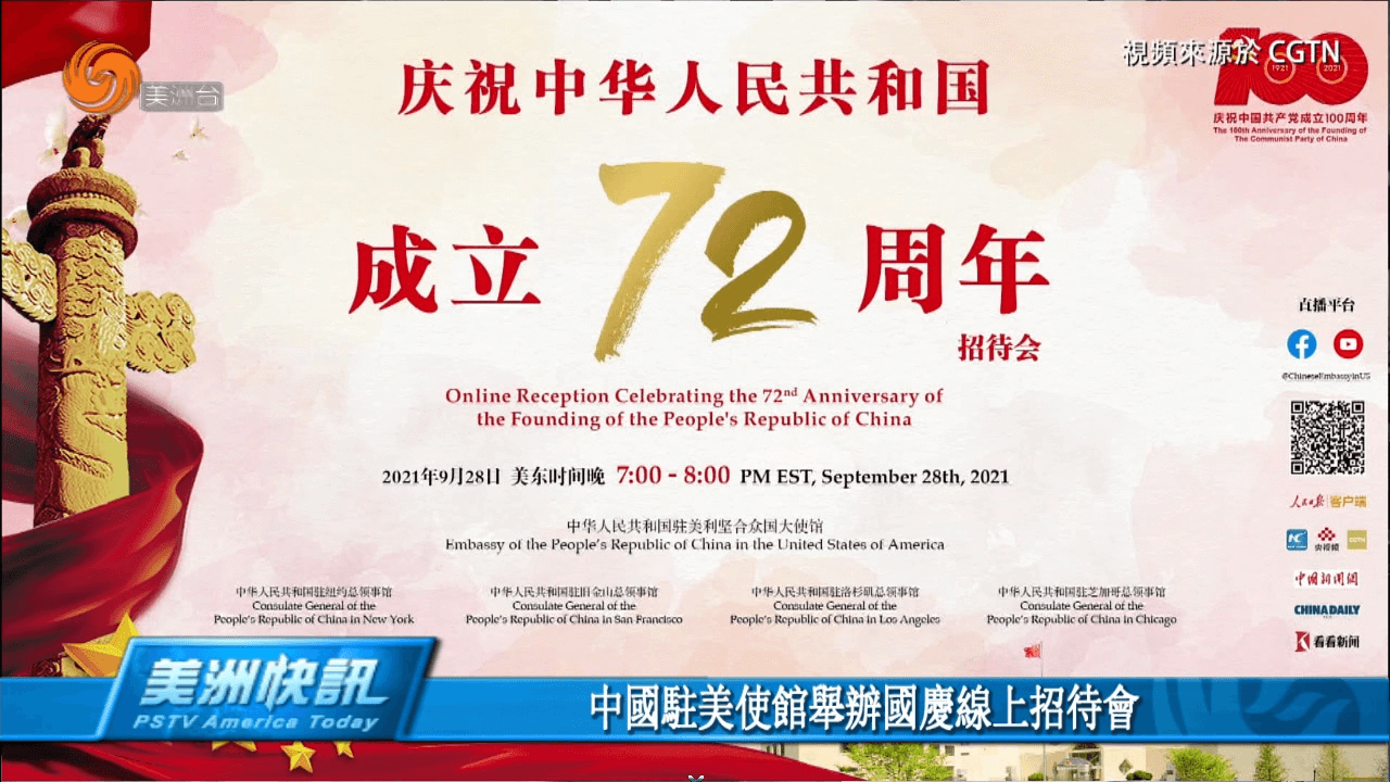 中国驻美使馆举办国庆线上招待会 中国驻美国大使馆及驻纽约、旧金山、洛杉矶、芝加哥总领馆28号共同举办,庆祝中华人民共和国成立72周年线上招待会。中国驻美大使秦刚在致辞中表示,对美国各界人士长期关心支持中美关系发展表示感谢。秦刚说,中美作为不同历史文化、不同社会制度、不同发展阶段的两个大国,是和平共存还是冲突对抗,是合作共赢还是零和博弈,事关两国人民的福祉,也事关世界的未来。秦刚还欢迎美国运动员们参加北京2022冬奥会和冬残奥会, 美洲 2021年09月30日 0 点赞 0 评论 2314 浏览