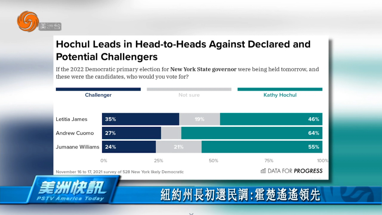 纽约州长初选民调:霍楚遥遥领先 周一公布的一项最新民调显示,在纽约州长竞选民主党初选中,现任州长霍楚支持率遥遥领先。霍楚目前获得了36%民主党选民的支持,比纽约州总检察长詹乐霞的支持率高出14个百分点,比前任州长库默支持率高21个百分点,后者坚称自己无意参选。其他几位潜在参选人的支持率为个位数,纽约市长白思豪的支持率为3%,排在六名潜在参选人的最后一位。另外,约11%的选民称尚未做出决定。如果将库默排除在潜在参选人名单之外,将使 美洲 2021年11月22日 0 点赞 0 评论 2431 浏览